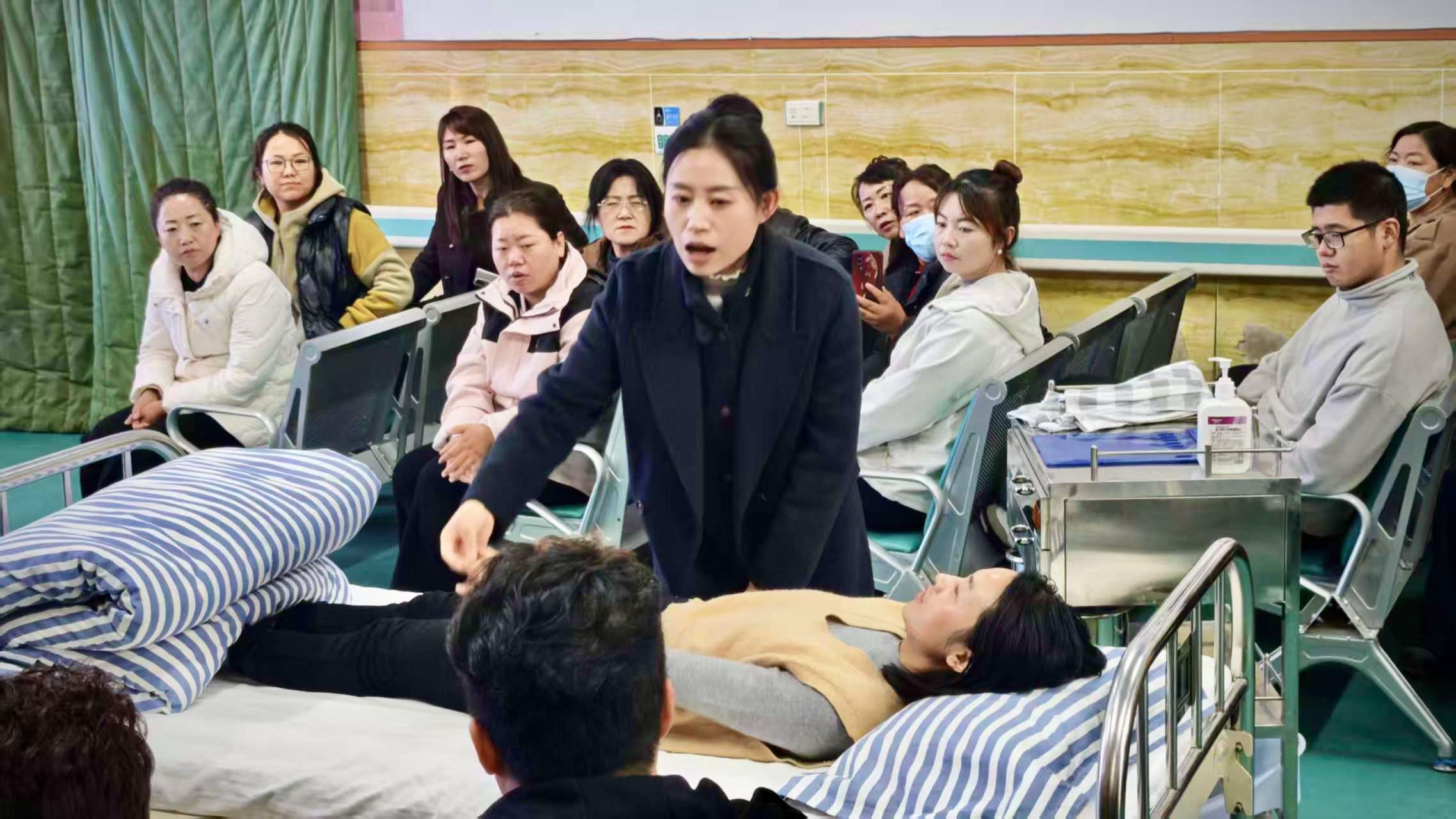 隨著結業(yè)日期臨近,學員們開始在模擬病房進行綜合技能比拼。更換床單時要如何保護老人隱私,協(xié)助進食時怎樣觀察吞咽反應,每個環(huán)節(jié)都有評委嚴格打分。在失能老人照護專區(qū),三四名學員正協(xié)作給“偏癱患者”更換衣物,有人專門托住老人頭部,有人注意保暖遮蓋,動作流暢如行云流水。