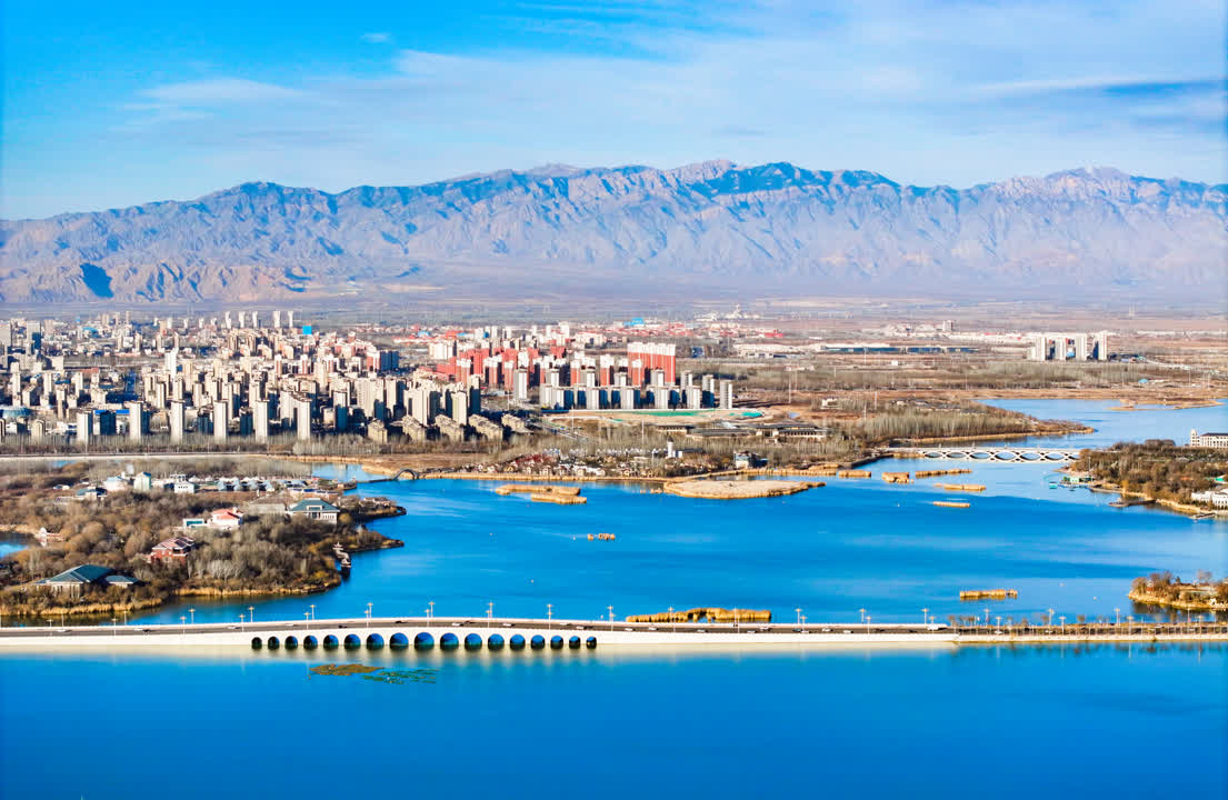 12月2日,銀川閱海湖與賀蘭山構成一幅“水天一色、山景相映”的生態(tài)畫卷。記者 馬楠 攝