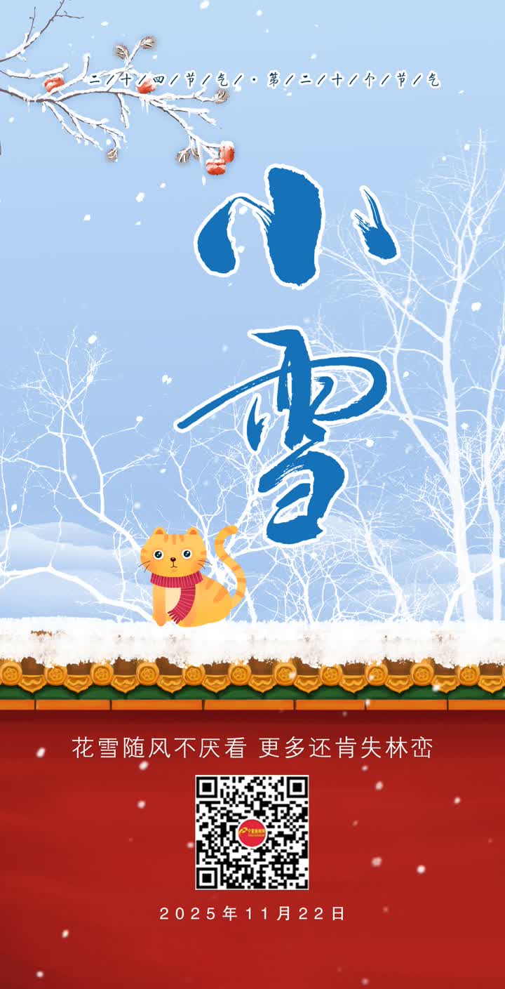“小雪”是二十四節(jié)氣中的第二十個節(jié)氣,也是冬季的第二個節(jié)氣?!对铝钇呤蚣狻防镏v:“小雪,十月中雨下而為寒氣所薄,故凝而為雪,小者未盛之辭?!本褪钦f“小雪”節(jié)氣到來之后,大氣中的水蒸氣遇到了寒冷的空氣就凝固為雪,這個“小”指的是沒有到達最盛大的樣子,就是“未盛之辭”。