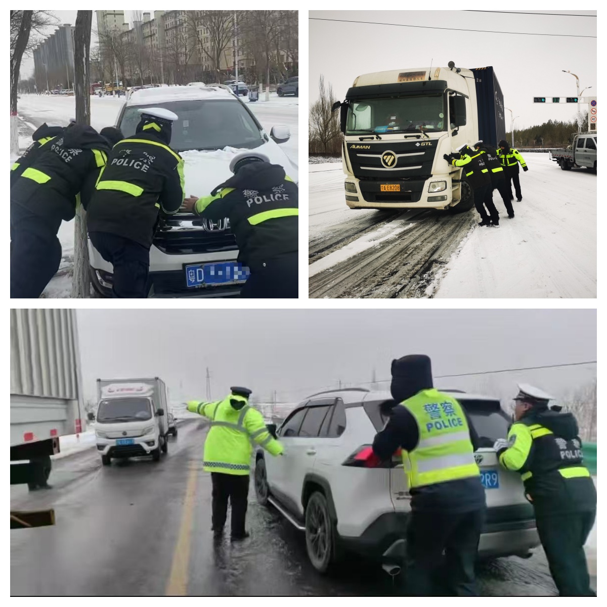 執(zhí)勤民輔警化身“引路人”“推車人”“鏟雪人”,主動(dòng)為群眾排憂解難。城區(qū)巡邏組在巡邏途中,發(fā)現(xiàn)一輛轎車不慎滑入路邊樹(shù)坑無(wú)法脫困。見(jiàn)此情形,巡邏民輔警立即停車上前,一邊安撫車主情緒,一邊與車主齊心協(xié)力展開(kāi)救援。大家找準(zhǔn)發(fā)力點(diǎn),齊聲發(fā)力將被困車輛推出樹(shù)坑。成功脫困后,車主對(duì)民輔警的及時(shí)相助連連道謝。針對(duì)雪天路面濕滑、能見(jiàn)度低的特點(diǎn),民警通過(guò)喊話器持續(xù)對(duì)城區(qū)過(guò)往車輛進(jìn)行安全提示,反復(fù)引導(dǎo)駕駛員減速慢行、保持安全車距,全力守護(hù)城區(qū)道路通行安全。