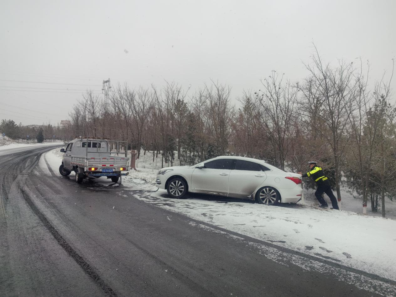 降雪天氣導(dǎo)致部分車輛因路面濕滑、操作不當(dāng)陷入困境,為切實幫助群眾解決實際困難,交管大隊將救援力量下沉至一線,在轄區(qū)重點路段、偏遠路段巡邏值守,一旦發(fā)現(xiàn)車輛打滑、受困等情況,立即上前開展救援。救援過程中,民警輔警不畏嚴(yán)寒,徒手推車、鋪設(shè)防滑物,幫助受困車輛脫離險境,用實際行動溫暖了雪天出行的群眾,彰顯了交管隊伍的責(zé)任與擔(dān)當(dāng)。
