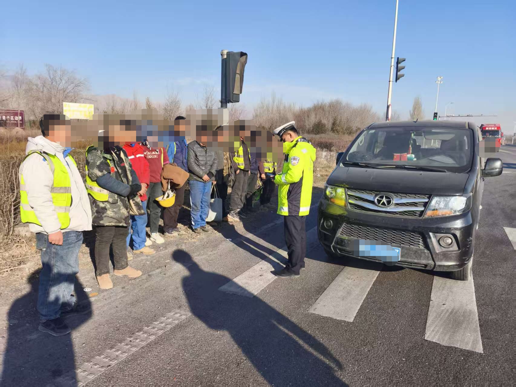 當(dāng)日10時(shí)15分許,大隊(duì)民警馬小虎、輔警馬榮鑫開展巡邏至110國道與南繞城連接線路口處,看到旁邊車牌號為蒙AJ9***的面包車內(nèi)人頭攢動,疑似超員。民警隨即下車對該車輛進(jìn)行檢查。經(jīng)核查,該車核載7人,實(shí)載10人,超員3人,屬于超員違法行為。經(jīng)民警詢問,駕駛員李某某稱其拉載務(wù)工人員前往內(nèi)蒙古務(wù)工,抱著僥幸心理覺得不一定遇到交警查車,就將務(wù)工人員都拉上了車。民警對駕乘人員進(jìn)行了批評教育,講明違法超員存在的交通安全隱患及危害性。隨后責(zé)令駕駛?cè)藢⒊瑔T乘客安全轉(zhuǎn)運(yùn),及時(shí)消除安全隱患,并按照相關(guān)法律法規(guī)對駕駛?cè)?/span>李某某進(jìn)行了處罰。(西夏區(qū)交警二大隊(duì))
