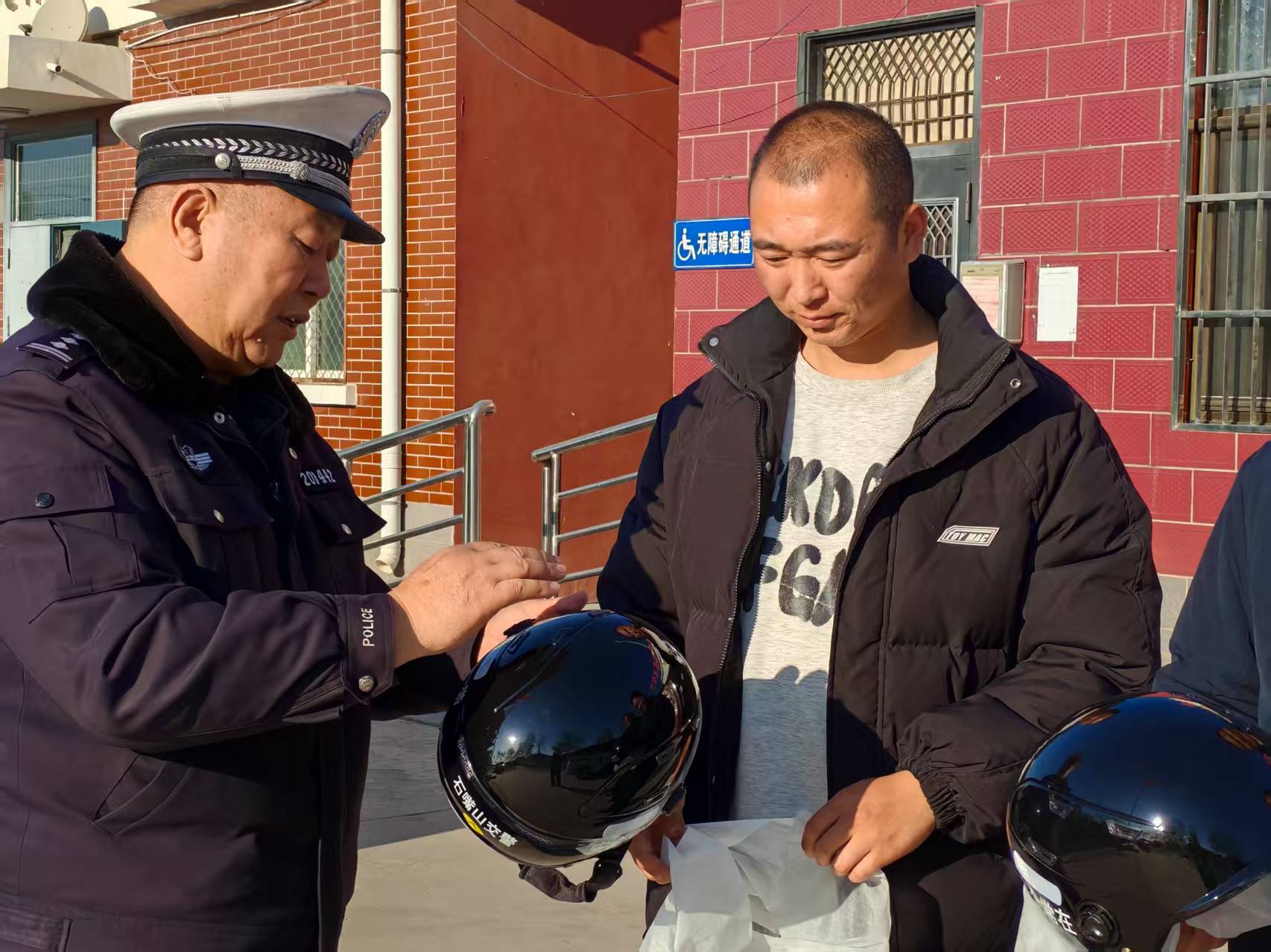 民警結(jié)合農(nóng)村道路出行特點,用通俗易懂的方言向村部工作人員和過往村民講解騎乘摩托車、電動自行車不佩戴安全頭盔、駕乘汽車不系安全帶等違法行為的危害,通過典型事故案例剖析,讓群眾直觀感受“一盔一帶”的重要性。同時,民警向村部工作人員贈送了石嘴山交警定制的安全頭盔,向村民發(fā)放交通安全宣傳單,詳細解讀交通法規(guī)和安全出行知識,引導群眾自覺摒棄交通陋習,養(yǎng)成安全文明出行習慣。