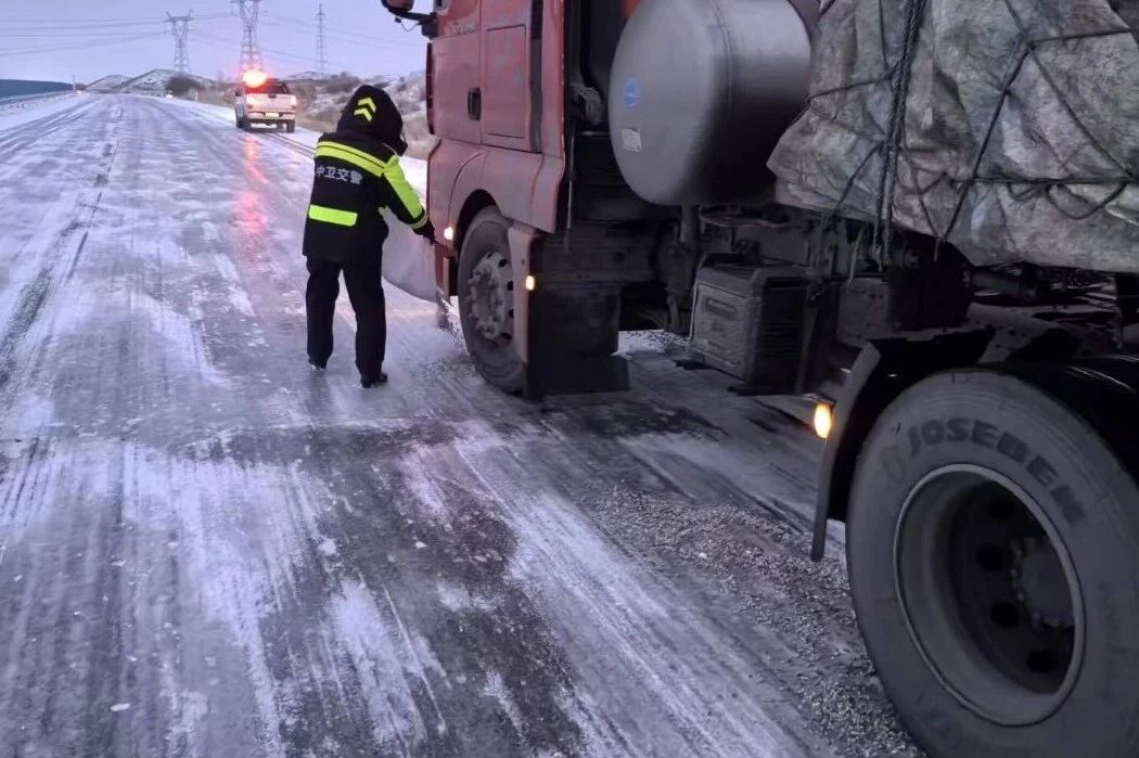 多措并舉,筑牢防線。各交管大隊(duì)民輔警向過往司機(jī)反復(fù)叮囑,謹(jǐn)慎駕駛、減速慢行、保持車距;針對(duì)橋梁隧道及易結(jié)冰路段,提前設(shè)置警示標(biāo)志并安排警力值守,以醒目提示與堅(jiān)實(shí)守護(hù),為車輛指引平安方向;加強(qiáng)國(guó)省道常態(tài)化巡邏,及時(shí)發(fā)現(xiàn)并處置路面隱患,推動(dòng)風(fēng)險(xiǎn)“動(dòng)態(tài)清零”,全力保障主干動(dòng)脈安全暢通。