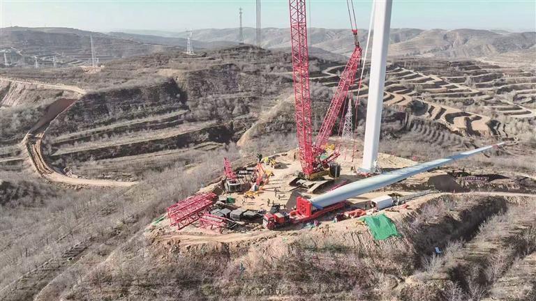 11月30日,隆德縣好水鄉(xiāng)國能寧湘直流配套固原100萬千瓦風電項目施工現(xiàn)場,風機塔筒巍然聳立,工人們緊張有序地開展風機葉片吊裝工作。據(jù)了解,該項目建成投產(chǎn)后,預(yù)計年發(fā)電量約3億千瓦時,跨區(qū)輸送至湖南,實現(xiàn)寧夏優(yōu)勢能源資源的開發(fā)與外送,促進綠色能源大范圍配置消納,具有良好的經(jīng)濟效益和環(huán)保效益。同時,按火電煤耗301.5g/kWh折算,每年可節(jié)約標煤4.71萬噸,減排二氧化碳14.17萬噸、二氧化硫527噸、氮氧化物544噸、煙塵637噸,將顯著改善區(qū)域大氣環(huán)境質(zhì)量。通訊員 黃天 張浩亮 攝